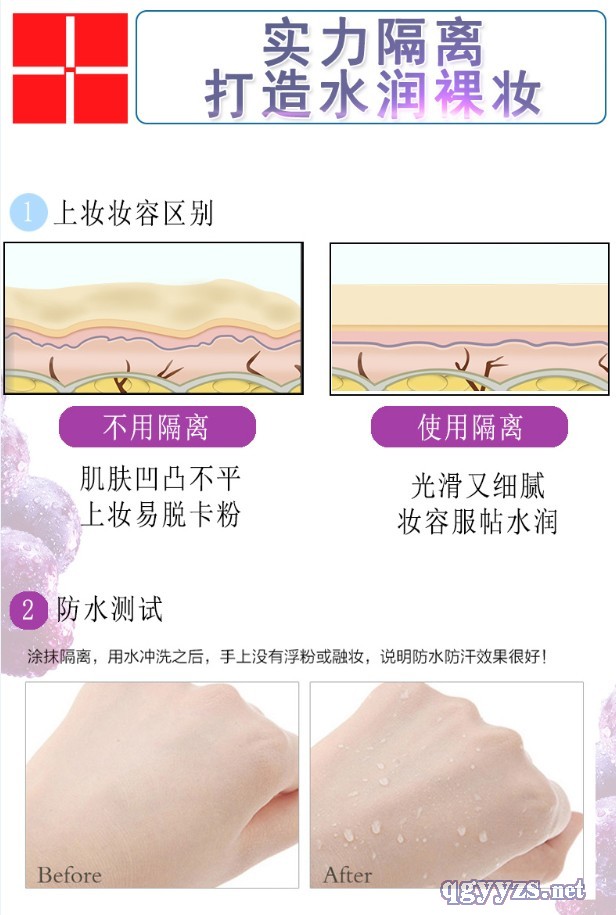 | 產品用途 | 使用效果:配方溫和不刺激。蘊含葡萄籽精華,質地溫和輕透,能夠自然遮住臉部瑕疵,隱藏毛孔,貼服肌膚,提亮肌膚,在表面形成保護膜,有效隔離污染空氣,灰塵,持久不掉妝。適用于敏感性肌膚。 |