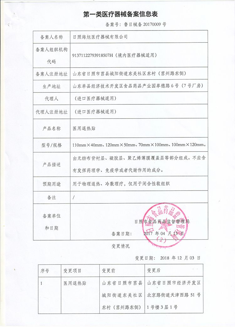 生產(chǎn)企業(yè): 日照海旭醫(yī)療器械有限公司