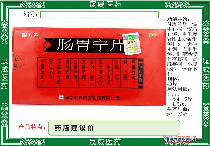| 功能主治 | 健脾益腎,溫中止痛,澀腸止瀉。用于脾腎陽虛所致的泄瀉,癥見大便不調、五更泄瀉、時帶黏液,伴腹脹腹痛、胃脘不舒、小腹墜脹。 |