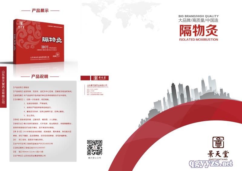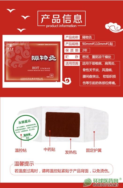 | 使用方法 | 確認(rèn)包裝無(wú)破損后,打開包裝,取出隔物灸,將隔離膜撕去,按照傳統(tǒng)隔物灸療法貼于患處,至不在發(fā)熱時(shí)更換 |