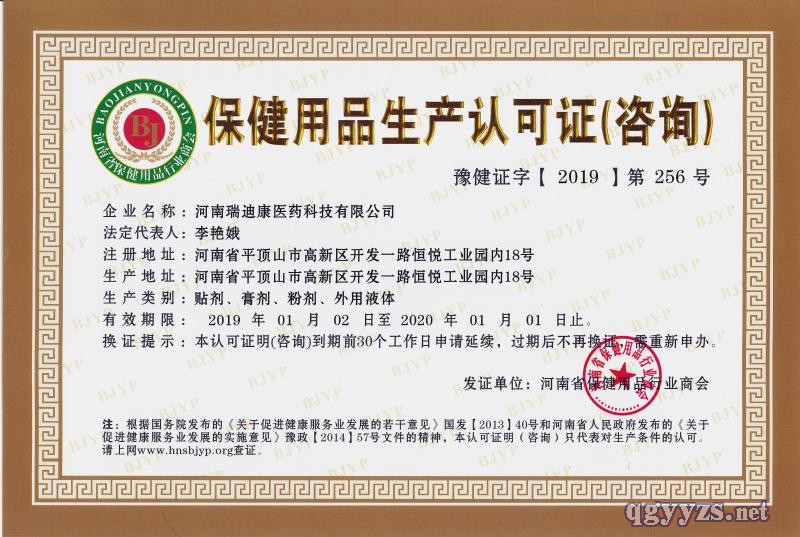 批準(zhǔn)文號: 豫衛(wèi)消證字2019第0015號