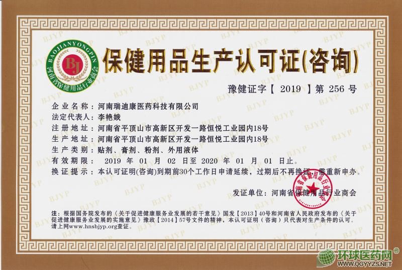 批準(zhǔn)文號: 豫衛(wèi)消證字2019第0015號