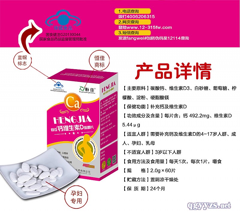 | 產(chǎn)品名稱 | 恒佳牌鈣維生素D咀嚼片孕婦高鈣片 |