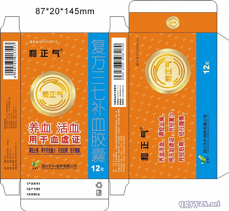 | 品牌名稱 | 和其正復(fù)方三七補(bǔ)血膠囊 |