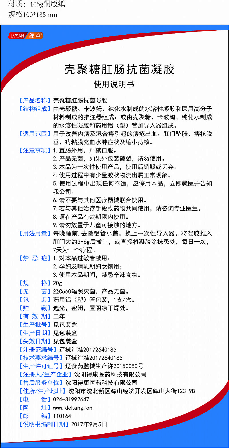 產品名稱: 殼聚糖肛腸抗菌凝膠