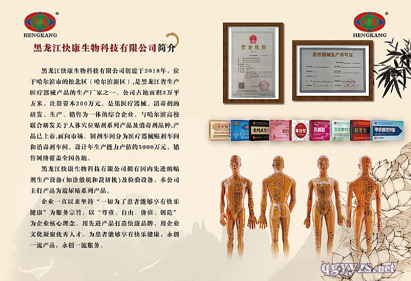 - 黑龍江快康生物科技公司擁有國(guó)內(nèi)先進(jìn)的貼劑生產(chǎn)設(shè)備(如涂敷機(jī)和裁切機(jī))及檢驗(yàn)設(shè)備。本公司主打產(chǎn)品為甲狀腺結(jié)節(jié)貼及泌尿系統(tǒng)貼系列產(chǎn)品。