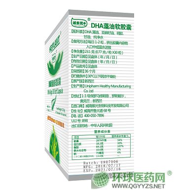 | 主要成分 | 藻油DHA,花生四烯酸(ARA),亞麻籽油,膠囊殼(明膠、甘油、純凈水) DHA100mg |