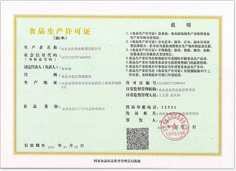 生產(chǎn)企業(yè): 山東朱氏藥業(yè)集團(tuán)