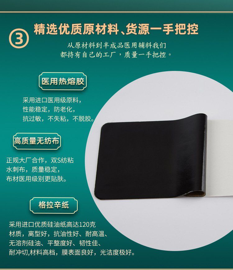 | 補(bǔ)充說(shuō)明 | 遠(yuǎn)紅外理療貼,是醫(yī)療器械文號(hào)的黑膏藥產(chǎn)品,產(chǎn)品主要用于供應(yīng)連鎖藥店。該產(chǎn)品市場(chǎng)反響非常好,回頭客比較多;⒔裢ㄟh(yuǎn)紅外理療貼由純中藥熬制膏體,外加遠(yuǎn)紅外陶瓷微粉,以及水凝膠共同構(gòu)成。 |