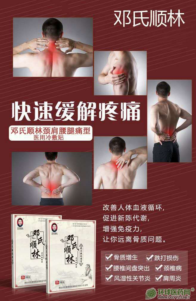 | 補(bǔ)充說明 | 適用于跌打損傷,肌肉酸痛,新舊扭傷,急慢性組織損傷,風(fēng)濕、類風(fēng)濕,肩周炎,頸椎病,腰椎間盤突出,四肢麻木,關(guān)節(jié)炎,慢性勞損,風(fēng)寒引起的腰、膝、腿腫脹疼痛,關(guān)節(jié)運(yùn)動(dòng)功能障礙,傷風(fēng)引起的頭痛等。 |