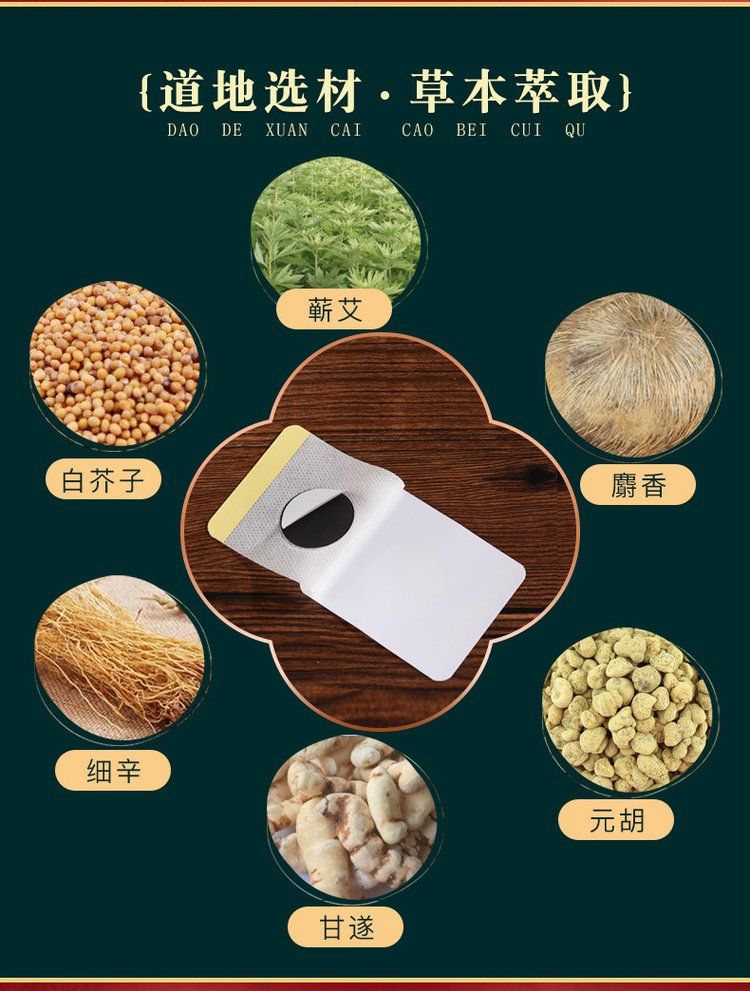 | 主要成分 | 主要由透皮膠布、防滲圈、藥物控釋棉、含遠(yuǎn)紅外效應(yīng)的載體、覆蓋膜組成。 |