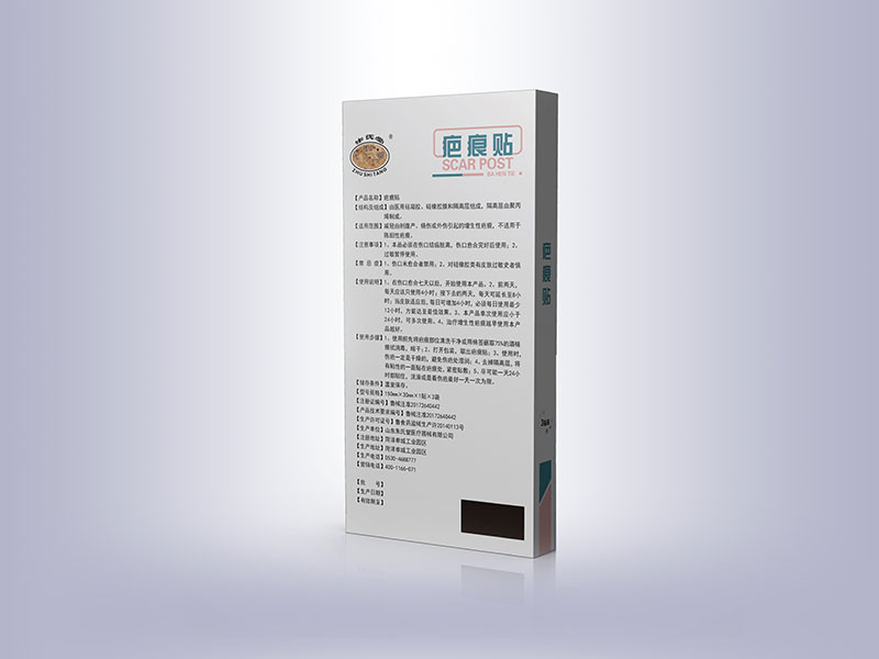 | 使用方法 | 1、使用前先將疤痕部位清洗干凈或者用棉簽蘸取75%的酒精擦拭消毒,晾干;2、打開包裝,取出疤痕貼;3:使用時傷疤一定是干燥的,避免傷疤處濕潤;4:去掉隔離層,將有粘性的一面貼在疤痕處,緊密貼敷;5:盡可能一天24小時內都貼住,洗澡或看傷疤*好一天一次為限。 |