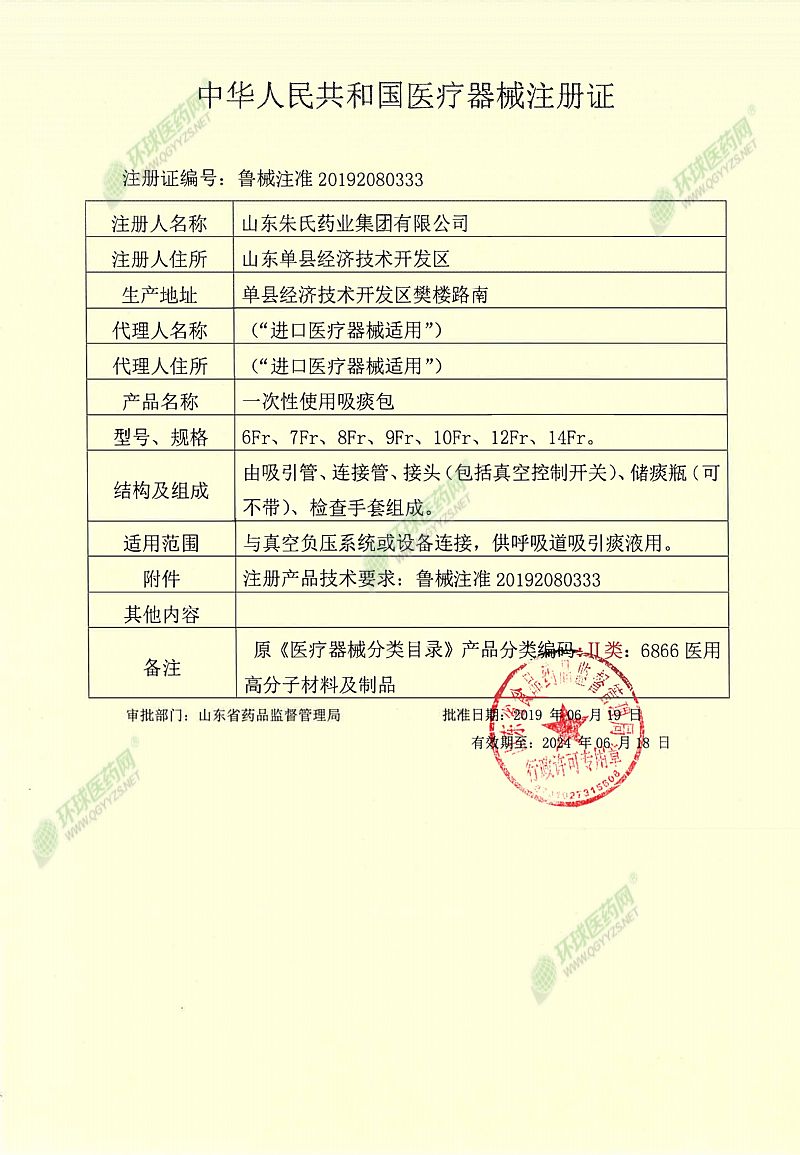 | 補(bǔ)充說(shuō)明 | D:16638505889 產(chǎn)品名稱:一次性使用吸痰包 型號(hào)、規(guī)格由“4.5F、5F、6F、6.5F、7F、7.5F、8F、9F、10F、12F、 14F、15F、16F、18F、20F”; 產(chǎn)品技術(shù)要求變更內(nèi)容見(jiàn)附頁(yè)。 結(jié)構(gòu)及組成:本產(chǎn)品由一根吸痰管和一雙一次性PE檢查手套組成。 |