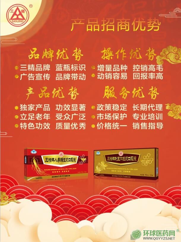 | 其它說明 | 品牌優(yōu)勢 三精品牌,藍瓶標識 廣告宣傳,品牌帶動 產(chǎn)品優(yōu)勢 優(yōu)質(zhì)產(chǎn)品,特色功效 質(zhì)量優(yōu)秀,功效** 天然成分,藥食同源 中藥上品,道地藥材 立足老年,受眾廣泛 操作優(yōu)勢 增量品種,控銷高毛 動銷容易,回報率高 服務優(yōu)勢 政策穩(wěn)定,長期代理 市場保護,價格統(tǒng)一 銷售指導,專業(yè)培訓 |