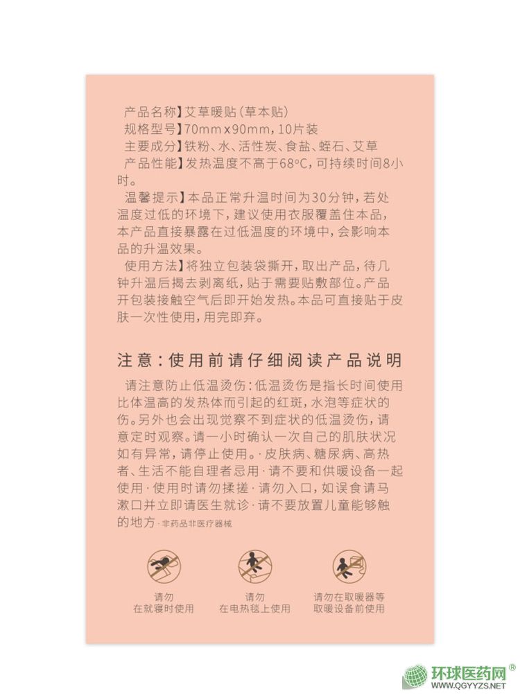 | 使用方法 | 將獨(dú)立包裝袋撕開(kāi),取出產(chǎn)品,待幾**升溫后揭去剝離紙,貼于需要貼敷部位。產(chǎn)品打開(kāi)包裝接觸空氣后即開(kāi)始發(fā)熱。本品可直接貼于皮膚一次性使用,用完即棄。 |