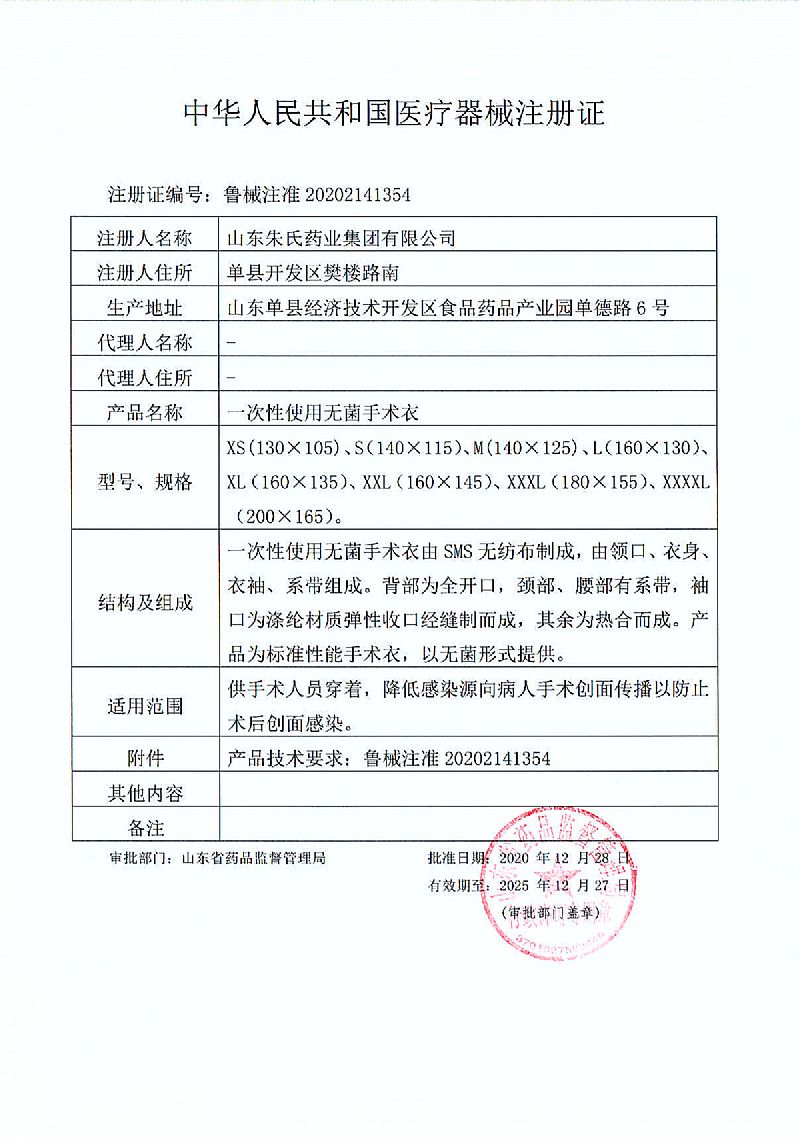 批準文號: 魯械注準20202141354 【驗證真?zhèn)?/a>】