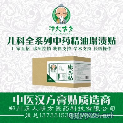 | 補(bǔ)充說明 | 清大古方系列中藥精油塌漬貼 一、微分態(tài),吸收快,作用迅速 清大古方精油塌漬貼是由純中藥提取物和中藥油制成,無輔料阻滯藥物吸收,如熱熔膠等,有效成分呈微分態(tài),更容易透皮 吸收; 二、含量高,更有效 清大古方精油塌漬貼每貼含中藥提取物和中藥油相當(dāng)于原生藥材12-20克,含藥量高,更有效; 三、臨床經(jīng)方,現(xiàn)代工藝,療效驗(yàn)證,**有效 清大古方精油塌漬貼系有經(jīng)多年臨床使用的經(jīng)方及歷代中醫(yī)名家的經(jīng)方,經(jīng)過科研院校再研究的成果轉(zhuǎn)化產(chǎn)品,成品制劑中 充分利用如提取、低溫發(fā)酵等現(xiàn)代中藥制備技術(shù),使藥物有效成分更易析出、滲透和吸收,在成方后和成品上市前,以臨床 制劑形式在多個(gè)三家兒童醫(yī)院應(yīng)用,效果明顯,**有效,被廣大醫(yī)者好評。 四、經(jīng)皮給藥,操作簡單,患兒適從性好 清大古方精油塌漬貼通過貼敷與特定穴位和部位,經(jīng)皮給藥,直達(dá)病灶,作用迅速;不經(jīng)口,無創(chuàng)給藥,更易被患兒接受; 不傷脾胃,不毒肝腎,更易于被患兒家長接受。 五、純中藥綠色療法,拒絕濫用抗生素、激素; 清大古方精油塌漬貼系中醫(yī)綠色療法,是國家大力倡導(dǎo)發(fā)展的方向。 六、包裝精美,自主設(shè)計(jì),不妨不冒(歡迎同行模仿產(chǎn)品內(nèi)在品質(zhì),鄙視抄襲外觀包裝);公司提供全套的物料支持; 七、固定層(膠布背托)采用德國進(jìn)口的漢高油膠,自行涂制,不過敏、不脫落、透氣性好; 八、效果明顯(部分病癥可以達(dá)到一次見效),PS:我們只會(huì)務(wù)實(shí)的做品質(zhì),真實(shí)的宣傳及傳遞產(chǎn)品信息; 九、直接貼敷,貼敷穴位及方法便于掌握,不需要現(xiàn)場調(diào)制; 十、相應(yīng)國家大力發(fā)展弘揚(yáng)中醫(yī)中藥綠色療法的大政方針,限制抗生素、激素及化藥; 十一、純中藥,無添加,打造特色終端醫(yī)療門診;綠療渠道**,不做藥店及流通,一箱一號,嚴(yán)控串貨; 十二、公司提供全套產(chǎn)品物料,支持圓桌會(huì)、學(xué)術(shù)會(huì); 鄭州清大精方醫(yī)藥科技有限公司;姚總13733153881(同微信) |