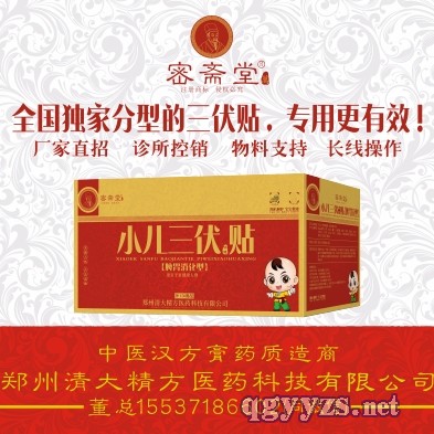 | 補充說明 | 全國優(yōu)質(zhì)分型的三伏貼,專用更有效 一、產(chǎn)品優(yōu)勢:****純中藥,臨床經(jīng)驗方,不含西藥、激素抗生素等; 二、優(yōu)質(zhì)白芥子去毒處理工藝,免發(fā)泡更**;超大膏體(外襯8*8cm,膏體4.5x4.5cm);進(jìn)口膠基,純中藥看得見; 三、包裝精美,自主設(shè)計,不妨不冒(歡迎同行模仿產(chǎn)品內(nèi)在品質(zhì),鄙視抄襲外觀包裝);內(nèi)裝膏藥品質(zhì)及包裝外觀具有壓 倒性優(yōu)勢;公司提供全套的物料支持; 四、固定層(膠布背托)采用德國進(jìn)口的漢高油膠,自行涂制,不過敏、不脫落、透氣性好; 五、直接貼敷,貼敷穴位及方法便于掌握,不需要現(xiàn)場調(diào)制; 六、限制抗生素、激素及化藥; 七、純中藥,無添加,**有效,打造特色終端醫(yī)療門診; 八、綠療渠道**,不做藥店及流通,一箱一號,嚴(yán)控串貨; 九、公司提供全套產(chǎn)品物料,支持圓桌會、學(xué)術(shù)會; 鄭州清大精方醫(yī)藥科技有限公司;姚總13733153881(同微信)/15939005725 |