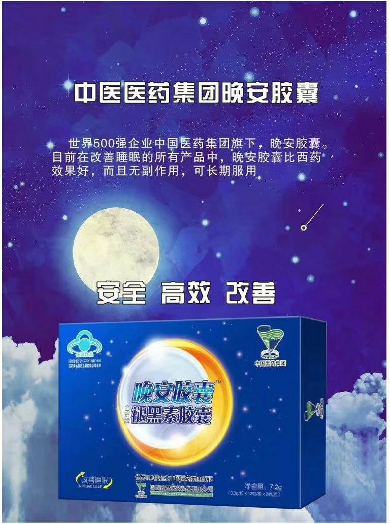 | 補(bǔ)充說明 | 世界500強(qiáng)企業(yè)中國(guó)醫(yī)藥集團(tuán)旗下,晚安膠囊。目前在改善睡眠的**產(chǎn)品中,晚安膠囊比西藥效果好,而且無 副 作 用,可長(zhǎng)期服用 |