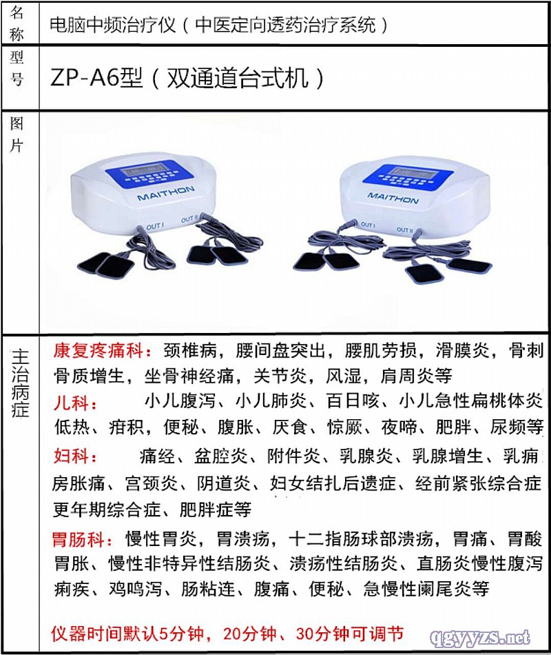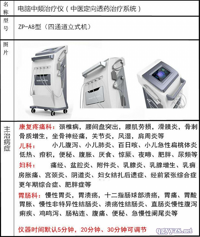 | 補(bǔ)充說明 | 當(dāng)前位置: 首頁 > 產(chǎn)品中心 > 定向透藥設(shè)備 中醫(yī)定向透藥治療系統(tǒng)ZP-A6型 作者:邁通醫(yī)療 產(chǎn)品名稱:中醫(yī)定向透藥治療系統(tǒng)ZP-A6型 河南邁通醫(yī)療設(shè)備有限公司根據(jù)傳統(tǒng)中醫(yī)藥導(dǎo)理論、結(jié)合人體經(jīng)絡(luò)學(xué)、熱敷穴位原理、生物藥物動(dòng)力學(xué)及現(xiàn)代微電腦UC技術(shù),運(yùn)用遠(yuǎn)紅外熱療、靶向藥離子導(dǎo)入、中頻脈沖治療技術(shù)、負(fù)壓電流治療等多種治療方式,結(jié)合多年臨床實(shí)踐和大量用戶反饋意見,成功研發(fā)出新一代ZP-A6型中醫(yī)定向透藥治療系統(tǒng)。 產(chǎn)品原理: 通過熱療和促進(jìn)劑(水化劑、角質(zhì)層剝離劑)的應(yīng)用對(duì)皮膚進(jìn)行預(yù)處理增加通透性,使脈沖電流讓a-螺旋結(jié)構(gòu)的多肽發(fā)生變化,產(chǎn)生允許藥物通過的生物通道,運(yùn)用藥離子導(dǎo)入的電脈作用使藥物離子充分水化、透皮轉(zhuǎn)運(yùn),使藥物中的有效成分深入、有效地透過皮膚粘膜快速進(jìn)入人體,靶向作用患部病灶。 治療原理: 1、定向透藥 直達(dá)病灶 儀器特設(shè)的非對(duì)稱中頻電流,保留了一定能量的負(fù)向脈沖,讓皮膚組織細(xì)胞重新排列,促進(jìn)皮膚電阻下降,擴(kuò)張小動(dòng)脈和毛細(xì)血管,血管壁透性增加,改善局部血液循環(huán),對(duì)藥物離子產(chǎn)生定向的推動(dòng)力。其特有的非對(duì)稱“定向透藥”技術(shù),經(jīng)多家醫(yī)院臨床驗(yàn)證,不僅藥物的導(dǎo)入深度和效果明顯提高,同時(shí)可削弱皮膚的刺痛感并有效地消除皮膚丘癥的發(fā)生。 2、溫?zé)嶂委? **有效 熱療是中醫(yī)常用的祛風(fēng)除濕治療方法,可通經(jīng)活絡(luò)、促進(jìn)血液循環(huán)、加速水腫的吸收消散。本儀器采用13.5V特低**電壓,通過螺旋電熱線產(chǎn)生35℃-50℃熱量,使藥物在熱霧器內(nèi)被加熱,激活而霧化成分子微粒,形成渦流和霧場,導(dǎo)引藥物分子微粒向體內(nèi)深層移動(dòng),達(dá)到“定向透藥”目的,以產(chǎn)生一系列熱效應(yīng)和藥物效應(yīng)。為了避免極板溫度過高而引起燙傷,在電路設(shè)計(jì)上采用了過流和過熱雙重保護(hù)功能,使用過程**可靠。 3、螺旋動(dòng)態(tài) 生物磁療 動(dòng)態(tài)生物磁場,一定劑量的磁場作用于人體穴位可以調(diào)和氣血、疏通經(jīng)絡(luò),有明顯的止痛、消炎、活血化瘀的功效。儀器治療電極上的螺旋電熱線通過50Hz交流電,產(chǎn)生交變動(dòng)態(tài)磁場,能有效調(diào)節(jié)患者患處的局部生物磁場,使人體組織中的水分子受磁活化,并軟化和溶解血管中的沉積物,從而到氣血通順目地。 4、數(shù)碼仿生 按摩理療 儀器選用新型微電腦芯片和多元數(shù)碼計(jì)算產(chǎn)生的組合波形,對(duì)中頻電流的調(diào)制方式進(jìn)行了模仿人手按摩功能的計(jì)算處理,即動(dòng)態(tài)多元仿生調(diào)制,使患者在治療過程中,充分感受到多種仿生按摩手法,治療過程更加貼近人體的自然狀況,不僅提高了療效,而且更加舒適。 5、綜合治療 更多選擇 可同時(shí)或選擇地進(jìn)行定向透藥、熱療、磁療、按摩等方式治療,使**治療機(jī)理相互補(bǔ)充,更充分的調(diào)節(jié)人體的生理機(jī)能、改善微循環(huán)、增強(qiáng)免疫功能,實(shí)現(xiàn)對(duì)疾病的多角度綜合治療,達(dá)到更加理想的治療效果。 6、**保護(hù) 雙重隔離 產(chǎn)品**貫徹國家*新**標(biāo)準(zhǔn),具有雙重隔離、開機(jī)保護(hù)、短路保護(hù)、聲光提示等多重保護(hù)功能。 中醫(yī)定向透藥治療系統(tǒng) 耗材分類管理和自動(dòng)化操作方案 中藥耗材配合中醫(yī)定向透藥治療系統(tǒng)將離子化的藥劑透過穴位、循經(jīng)絡(luò)直達(dá)病變部位,從而達(dá)到治療疾病的目的,中藥耗材融合了中醫(yī)治療、藥物治療、物理治療等相關(guān)技術(shù),完善了中醫(yī)定向透藥治療方法。 中藥耗材靶向透藥,藥物成分濃度高、作用持久穩(wěn)定,減少了藥物的全身效應(yīng)和不良反應(yīng),提高了患者病變部位的血藥濃度;比口服用藥利用率高達(dá)70℅左右,中藥外用和經(jīng)絡(luò)穴位刺激達(dá)到雙重治療效果。 |