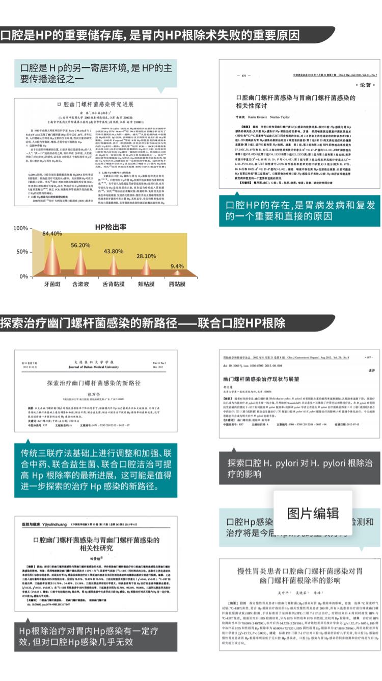 | 產(chǎn)品用途 | 幽門螺桿菌(HP)是許多慢性胃病發(fā)生發(fā)展中一個重要病因子。HP與慢性胃炎、消化性潰瘍、胃癌和粘膜相關(guān)性淋巴樣組織(malt)淋巴瘤密切相關(guān)。 針對由幽門螺桿菌引發(fā)胃炎胃潰瘍等胃病反復發(fā)作,配合三(四)聯(lián)療法,使用幽螺莎星牙膏同步進行口腔幽門螺桿菌(HP)清除,避免口腔HP進入胃腸道引發(fā)胃病反復發(fā)作。 早晚一次,HP清除率90以上。 |