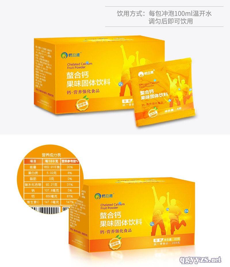 | 產(chǎn)品名稱 | 螯合鈣果味固體飲料 |