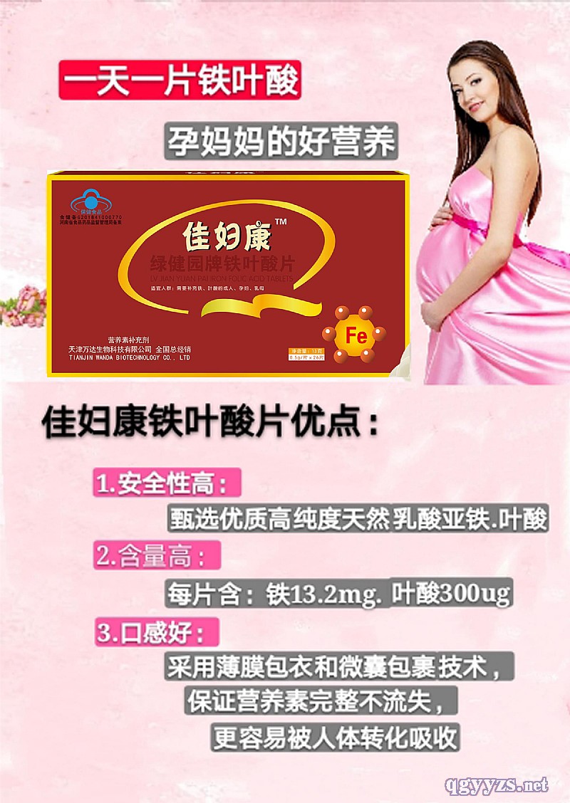 | 作用機理 | 成人、孕婦、乳母補充體內(nèi)所需要的葉酸及鐵 |