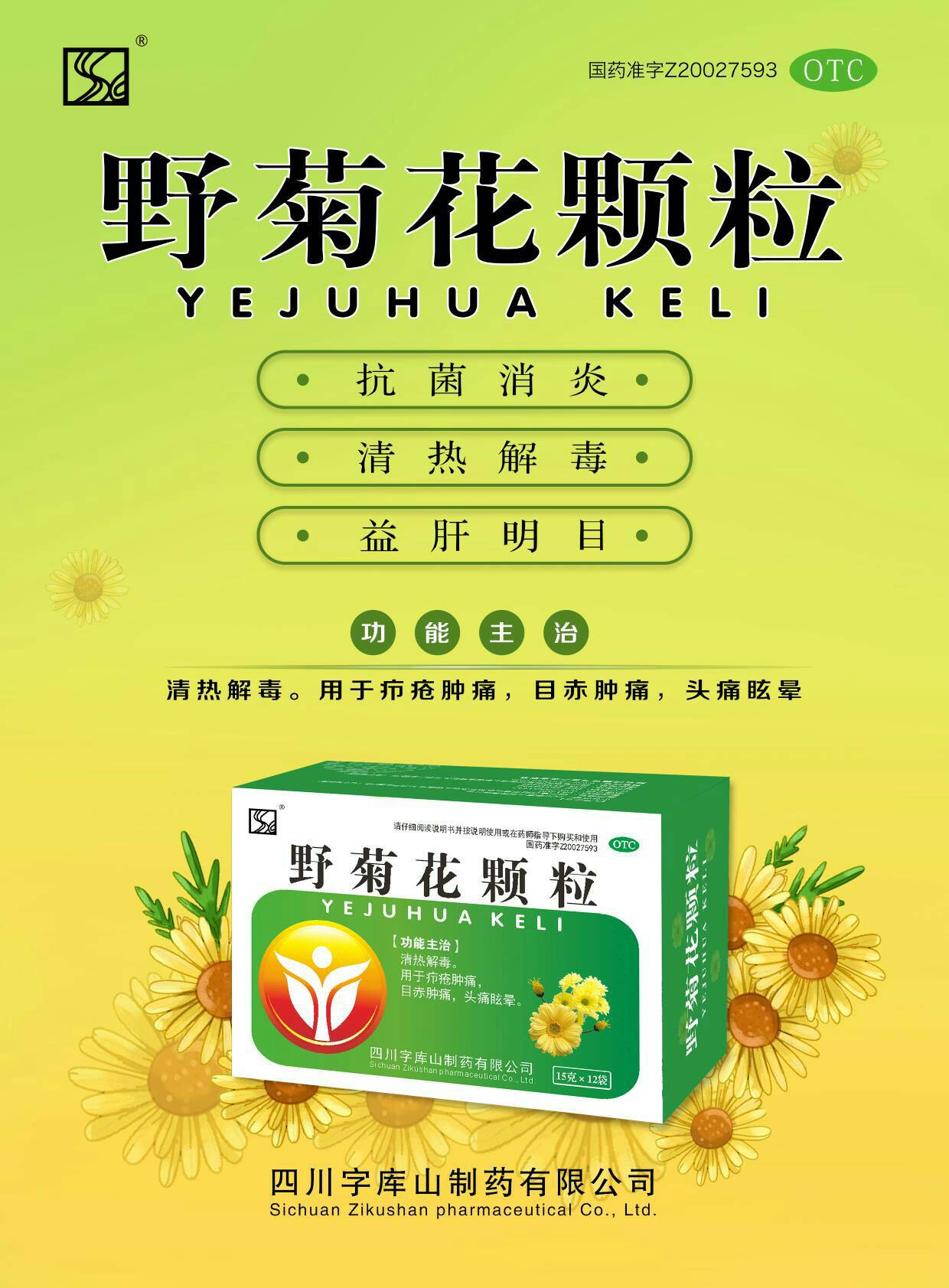 | 功能主治 | 清熱解毒。用于癤瘡腫痛,目赤腫痛,頭痛眩暈。 |