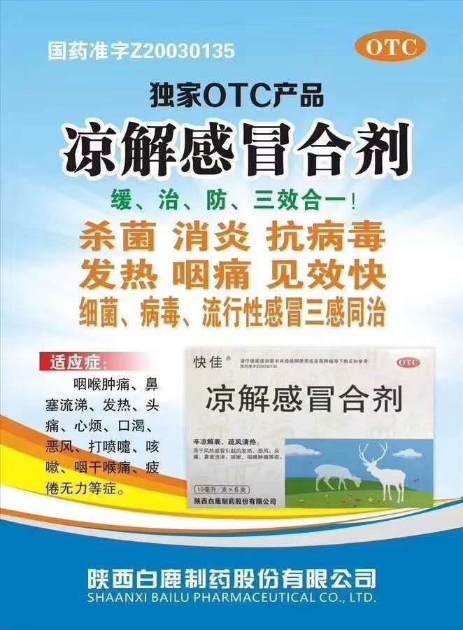| 產(chǎn)品賣點(diǎn) | 一:優(yōu)質(zhì)專利產(chǎn)品,市場控銷產(chǎn)品。 二:中藥三類新藥。 三:涼解感冒合劑是根據(jù)國內(nèi)**中醫(yī)內(nèi)科教授任繼學(xué)48年的臨床總結(jié)提煉而來。 四:三感同治,細(xì)菌性感冒,病毒性感冒,流行性感冒。 五:有效防治,甲型流感病毒,手足口病,單純皰疹病毒,流行性腮腺炎病毒。 六:純中藥制劑,*****,無禁忌人群。孕婦,哺乳期,兒童老人均可使用。 |