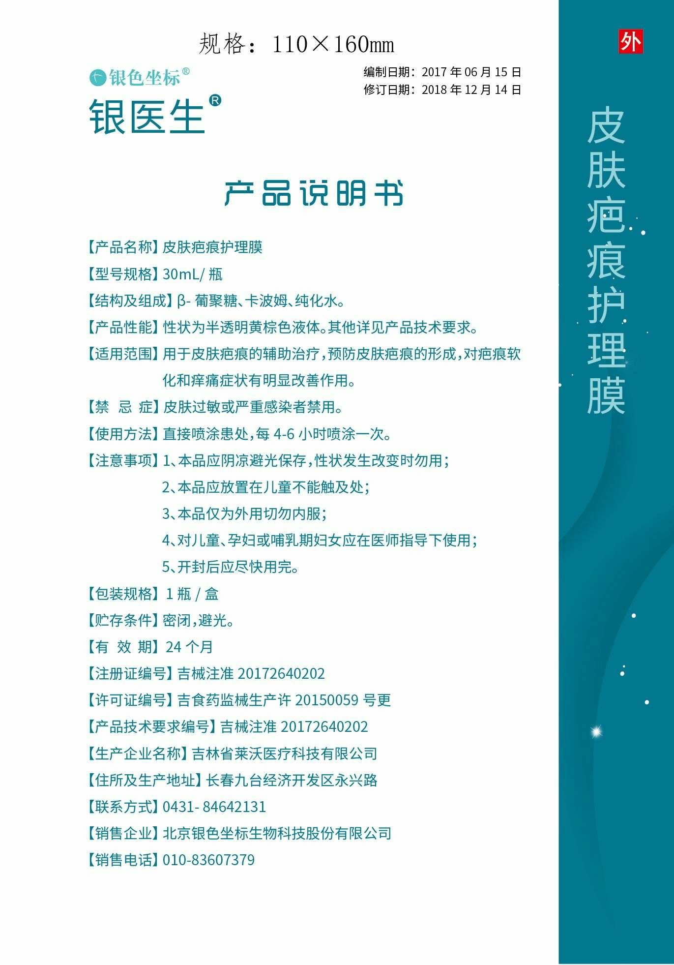 | 產(chǎn)品名稱 | 皮膚疤痕護(hù)理膜 |