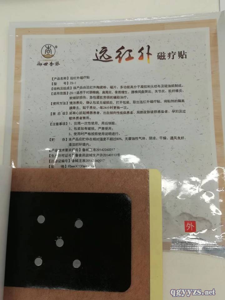 | 使用方法 | 清潔患處,確認(rèn)包裝無破損后,打開包裝,取出遠(yuǎn)紅外磁療貼,將貼劑的隔離膜撕去,貼于患處,每2-3日更換一次 |
