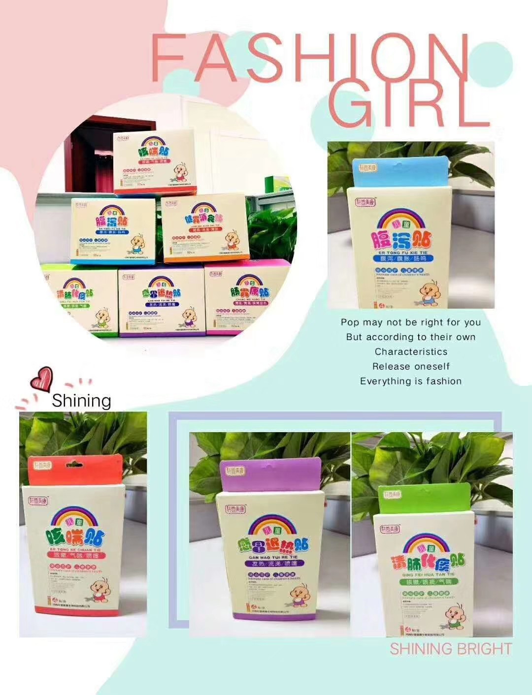| 產(chǎn)品用途 | 兒童貼劑分為: 小兒腹瀉貼:用于緩解飲食不當、消化不良、脾胃虛弱引起的腹瀉、腹脹、 腸鳴等癥狀腸胃康貼: 用于緩解飲食不當?shù)绕渌蛞鸬奈该、脾胃濕熱、胃痛等癥狀 健胃消食貼:促進消化、消除胃部不適 小兒咳喘貼:用于肺熱引起的咳嗽、咯痰、氣喘、流涕、咽干等癥狀 清肺化痰貼:用于肺熱引起的咳嗽、咯痰、氣喘等癥狀 感冒退熱貼:用于肺熱引起的咳嗽。 招商聯(lián)系??15378752234 |