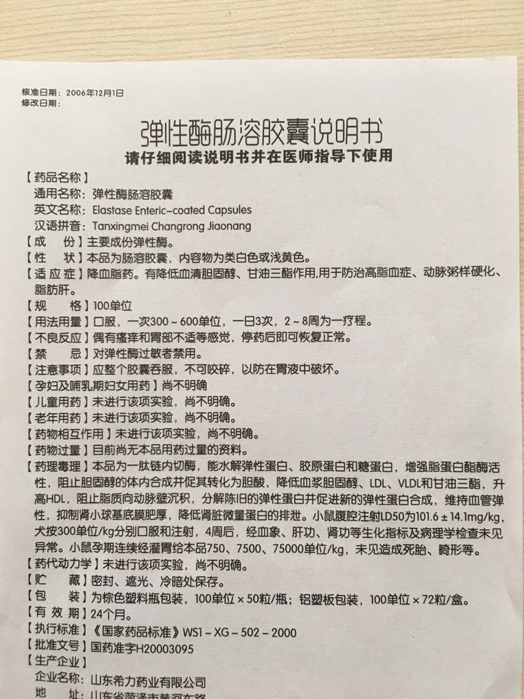 通用名稱: 彈性酶膠囊