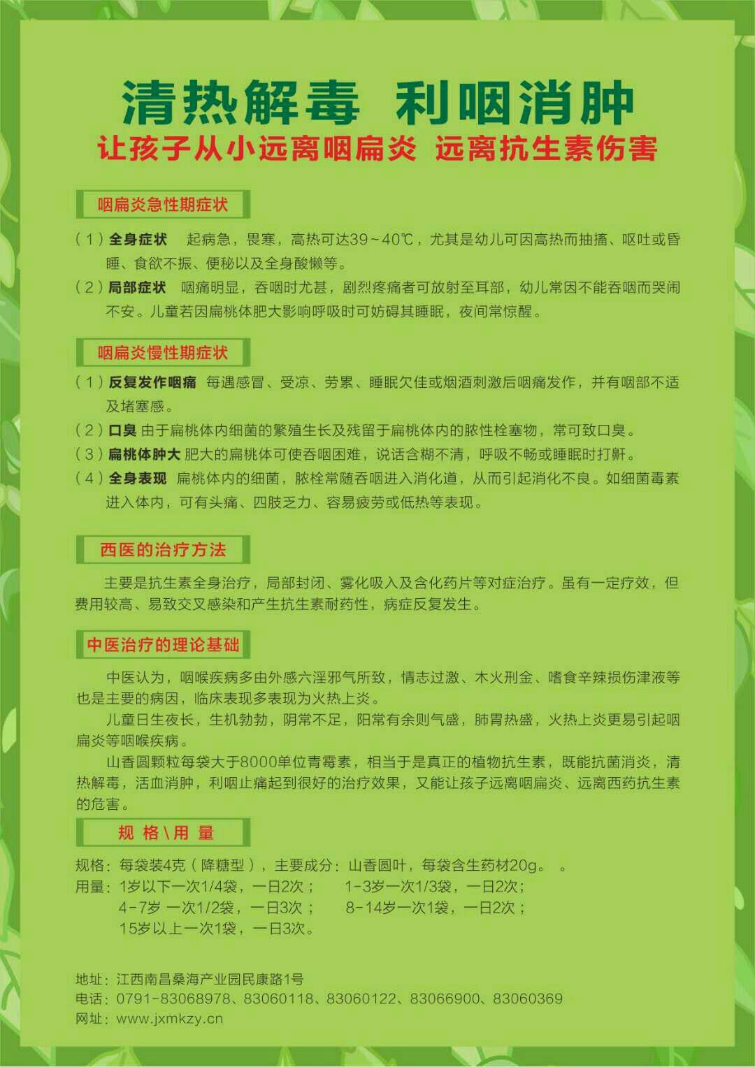 | 功能主治 | 清熱解毒,利咽消腫,用于肺胃熱盛,咽炎,急性扁桃體炎,喉嚨腫痛。 |