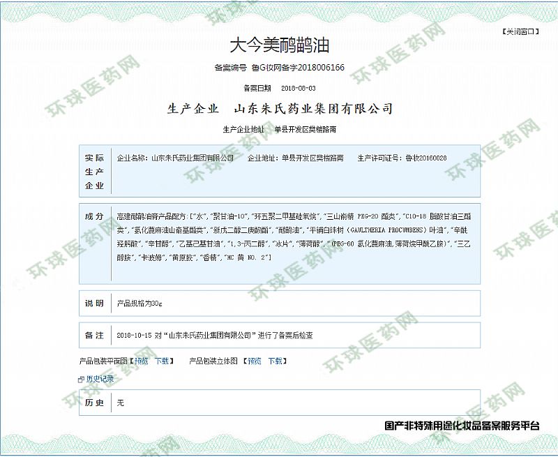 批準(zhǔn)文號(hào): 魯妝20160028 【驗(yàn)證真?zhèn)?/a>】