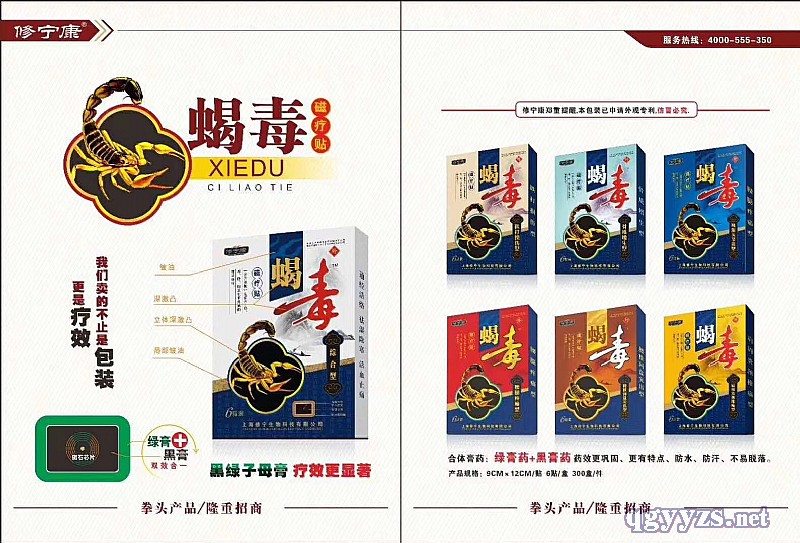 | 產(chǎn)品賣點(diǎn) | 黑綠子母膏雙層藥膏七大系列。 每盒六貼裝。9*12CM尺寸,內(nèi)附磁療芯片 隨貨附送試用貼,海報(bào),廣告錄音 |