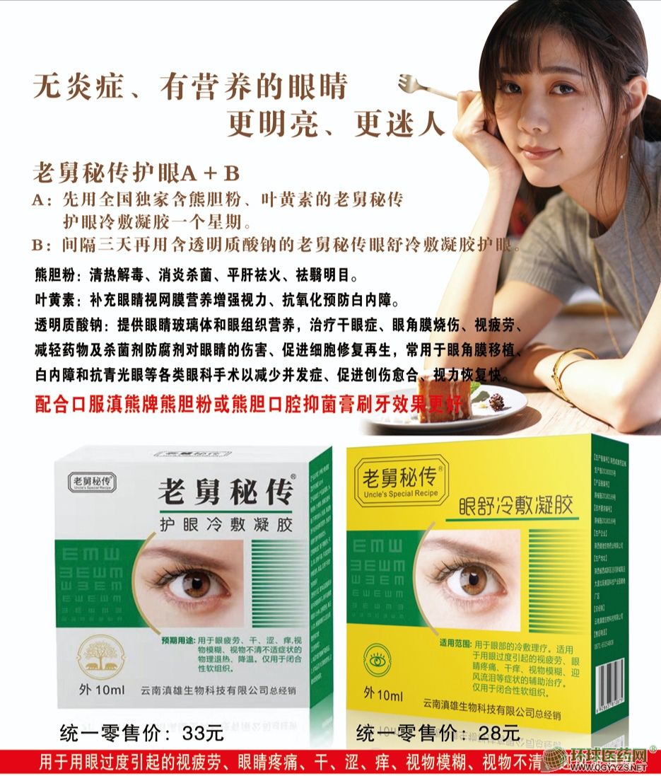 | 產(chǎn)品用途 | 含透明質(zhì)酸納、植物油,用于用眼過度引起的視疲勞、眼睛疼痛、干癢、視物糢糊、迎風(fēng)流淚等。 1.植物油:精選多種清熱、平肝、明目植物提取植物精油,綠色、有效成份含量高、使用效果好。 2.透明質(zhì)酸鈉(別稱:玻璃酸鈉、玻尿酸鈉、糖醛酸鈉、愛維、愛麗等。):是人體內(nèi)一種固有成分,廣泛存在于胎盤、羊水、晶狀體、關(guān)節(jié)軟骨、皮膚真皮層等組織,是構(gòu)成人體細(xì)胞間質(zhì)、眼玻璃體、關(guān)節(jié)滑液等結(jié)締組織的主要成分;在體內(nèi)發(fā)揮保水、維持細(xì)胞外空間、調(diào)節(jié)滲透壓,對(duì)細(xì)胞質(zhì)、細(xì)胞間質(zhì)中所含的細(xì)胞和細(xì)胞器官本身起潤(rùn)滑與滋養(yǎng)作用,同時(shí)提供細(xì)胞代謝的微環(huán)境、促進(jìn)細(xì)胞修復(fù)和再生。 |