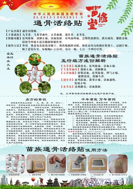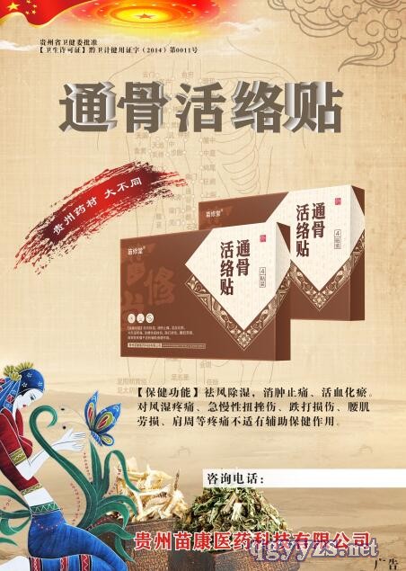 | 產(chǎn)品名稱 | 通骨活絡(luò)貼控銷(苗藥發(fā)明專利藥粉藥水) |
