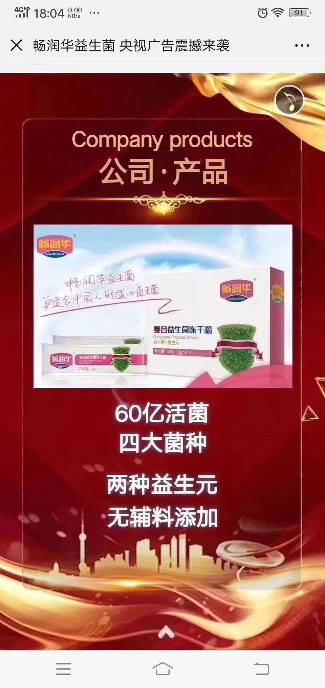 - 天津暢潤(rùn)華生物科技有限公司成立于2013年,專注于營(yíng)養(yǎng)食品和功能性食品研發(fā)和銷售,經(jīng)過近幾年來腳踏實(shí)地的發(fā)展,公司產(chǎn)品線日趨豐富,成功推廣了“益生菌凍干粉”、“乳鈣”、“ DHA藻油”、“小暢膠原蛋白肽”、“多種維生素”、“暢潤(rùn)茶”、等產(chǎn)品。