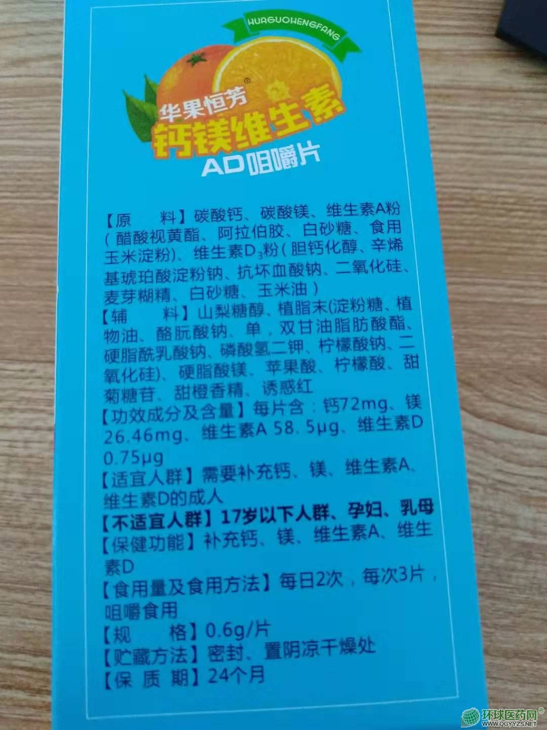 產(chǎn)品名稱: 華果恒芳鈣鎂維生素AD咀嚼片