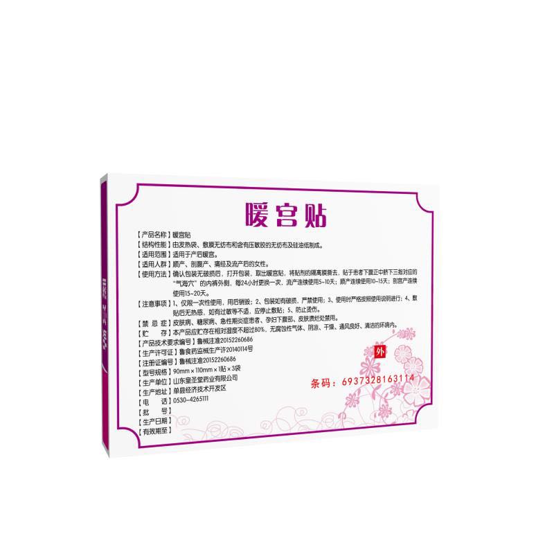 | 補(bǔ)充說明 | 1、暖宮貼是中醫(yī)外治學(xué)說與現(xiàn)代生物技術(shù)的結(jié)合與創(chuàng)新。暖宮貼通過穴位物理溫?zé)岷瓦h(yuǎn)紅外線理療的協(xié)同作用,預(yù)防產(chǎn)后月子病,促進(jìn)產(chǎn)后體形恢復(fù),有助于減少妊娠紋、淡化產(chǎn)后黃褐斑。 2、暖宮貼約5分鐘開始發(fā)熱并發(fā)射波長5~15um的遠(yuǎn)紅外線,法向發(fā)射率高達(dá)0.85。30分鐘可緩解產(chǎn)后腹痛,持續(xù)發(fā)熱12小時(shí)以上。 3、暖宮貼使用方便, 產(chǎn)品能自行發(fā)熱,輕薄如絹,可緊貼于女性內(nèi)褲外側(cè),既能起到治療效果,又不影響儀態(tài)美觀。 4、暖宮貼產(chǎn)品組方合理,工藝成熟,療效較好。產(chǎn)品不接觸皮膚,比較**。 |