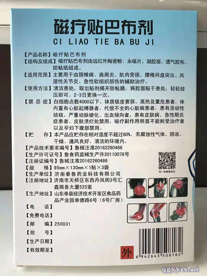 | 主要成分 | 磁療貼巴布劑由遠紅外陶瓷粉、永磁片、凝膠層、透氣膠布、防粘紙組成。 |