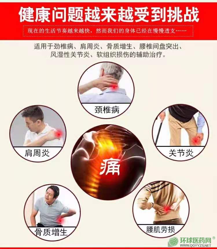 | 產(chǎn)品用途 | 主要用于QL-I型頸椎病、肩周炎、骨質(zhì)增生、腰椎間盤突出、風濕性關節(jié)炎、跌打損傷的輔助治療。 |