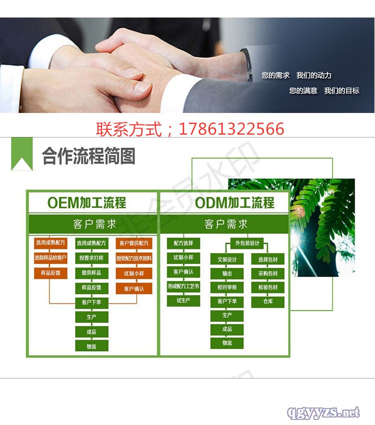 | 補(bǔ)充說明 | 本公司是一家集研發(fā)、生產(chǎn)加工、銷售于一體的OEM代加工生產(chǎn)廠家,專注壓片糖果、凝膠糖果、固體飲料、代用茶等生產(chǎn)與研發(fā),歡迎來廠參觀考察。 本公司代加工方式:。 1、來樣加工:我們根據(jù)客戶產(chǎn)品需求,對產(chǎn)品代加工備案,通過計劃研發(fā)配方,打樣,客戶確認(rèn),達(dá)到客戶要求打款批量生產(chǎn),發(fā)貨。 2、來料加工:客戶提供原料,公司審核符合SC標(biāo)準(zhǔn)后生產(chǎn),包材可自己提供也可公司設(shè)計提供。 3、包工包料:公司為您提供一站式服務(wù),配方、原材料、包材全方位服務(wù), 固體飲料類、壓片糖果類、補(bǔ)鈣產(chǎn)品、牡蠣片、膠原蛋白肽、瑪卡片、小分子活性肽、黑枸杞精片、小分子肽、辣木葉片、魚膠原蛋白肽、蛹蟲草牡蠣片、深海魚膠原蛋白肽、藍(lán)莓葉黃素片、補(bǔ)血產(chǎn)品、牡蠣杞草片、甘氨酸亞鐵顆粒、**女性減肥產(chǎn)品、阿膠片、**男性產(chǎn)品、血紅素鐵、OEM加工**片劑、枸杞紅棗顆粒、科研打樣、紅糖顆粒、菠菜營養(yǎng)粉、桑葚顆粒、益生菌、菊粉、氣血和顆粒、鈣鐵鋅顆粒、補(bǔ)鋅產(chǎn)品、螯合鈣、牡蠣肽、枸杞肽、大豆肽、魔芋、魔芋粉、蘆薈粉、杏仁葛根顆粒、白藜蘆醇酵素顆粒、一吃黑營養(yǎng)餐、亞麻酸籽油微囊粉、大麥若葉青汁、減肥果酵素粉、素食代餐粉、納豆紅曲顆粒、D-核糖顆粒、沙棘多維泡騰片、氨糖螯合鈣、沙棘螯合鈣、大豆分離蛋白、蜂花粉片、松花螯合鈣、果蔬酵素片、蛋黃粉片、木瓜片、葡萄籽顆粒、素食代餐粉、海參肽、元寶楓籽粉、神經(jīng)酸顆粒、速溶紅顆粒、黃精牡蠣粉、荷葉左旋肉減粉、猴頭菇蛋白、**女性減肥產(chǎn)品、**男性產(chǎn)品、OEM、加工**片劑、科研打樣、 |