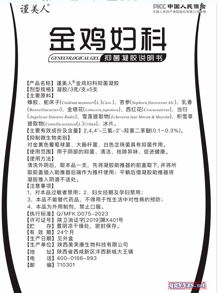 產(chǎn)品名稱: 謹(jǐn)美人®;金雞婦科抑菌凝膠