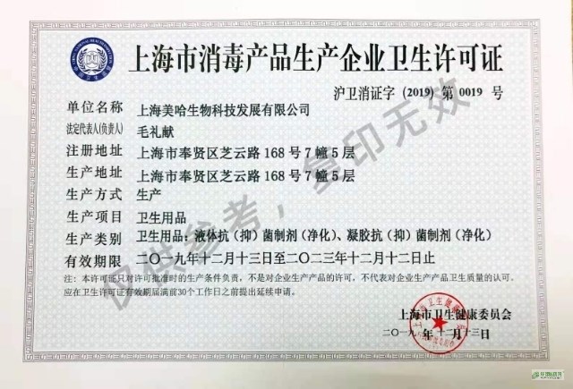 批準(zhǔn)文號(hào): 滬衛(wèi)消字證2019第0019號(hào)