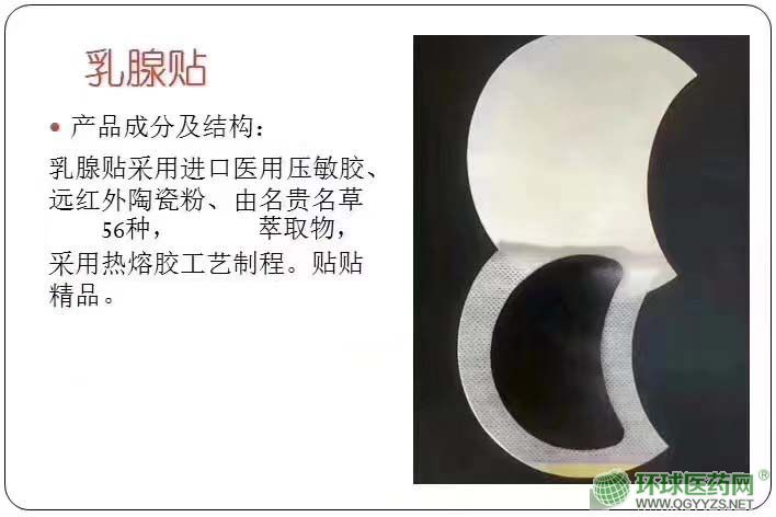 | 作用機(jī)理 | 根據(jù)中藥傳統(tǒng)貼敷療法,精選多種中藥采用*先進(jìn)的高分子親水性材料制成舒適、**、高效的現(xiàn)代貼劑巴布劑,中藥層厚,中藥藥效持久,具有活血通絡(luò),軟堅(jiān)散結(jié)的功效,適用于乳腺的疼痛和不適 |