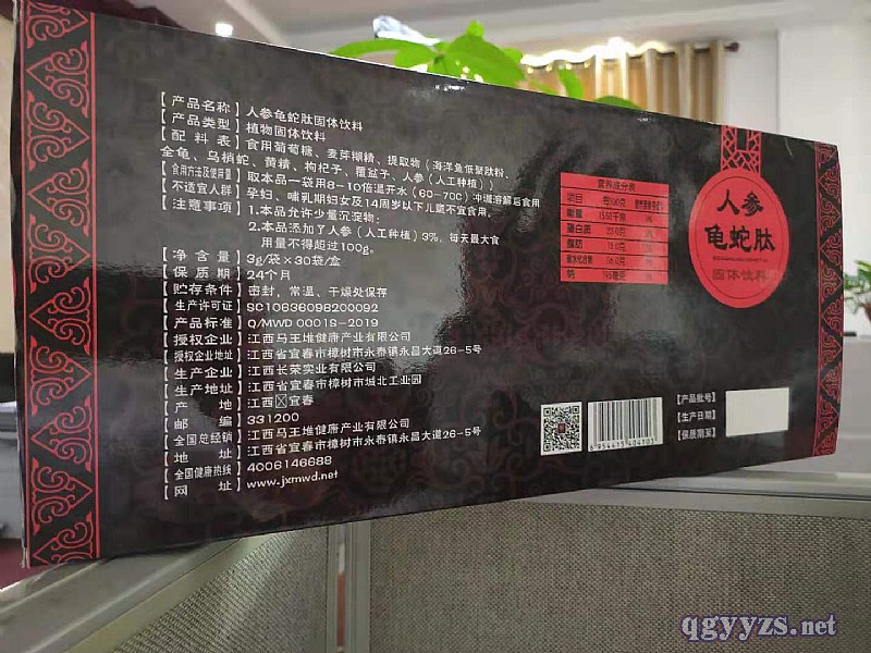 | 產(chǎn)品名稱 | 人參龜蛇肽固體飲料 |