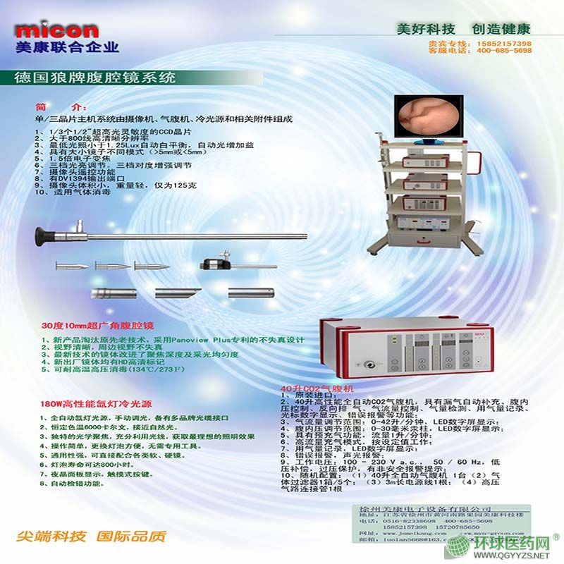| 產品規(guī)格 | 主機系統(tǒng)由攝像機,氣腹機,冷光源和相關附件組成。 |