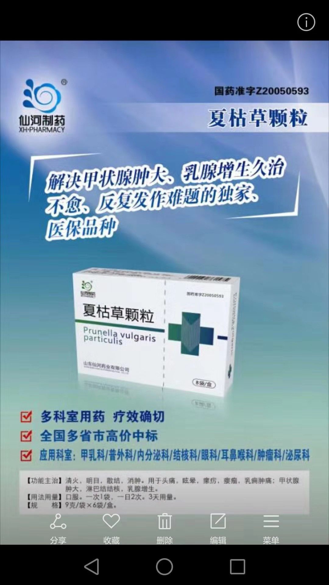 | 補(bǔ)充說明 | 1、國家醫(yī)保品種。 2、甲亢甲減、甲狀腺腫大及腫瘤、乳腺增生****。 3、可用于高血壓的輔助治療,尤其針對高血壓導(dǎo)致的頭痛、眩暈有**。 4、我廠產(chǎn)品以夏枯草球濃縮為浸膏入藥,黃酮含量比其他同類產(chǎn)品高出一倍以上。 5、嚴(yán)格的市場保護(hù)防竄貨。 6、學(xué)術(shù)支持、長線操作。 感興趣的朋友來聊聊18615549597,微信同號。 |